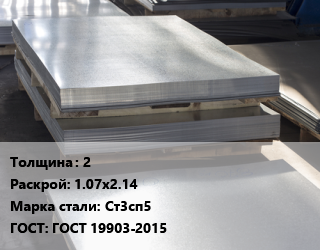 Лист горячекатаный 2 1.07х2.14 Сталь: Ст3сп5 ГОСТ: ГОСТ 19903-2015, ММК, по запросу цена от 62 518 Р / т, где купить, условия доставки в Гродно и Гродненской области