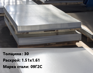 Лист горячекатаный 30 1.51х1.61 Сталь: 09Г2С