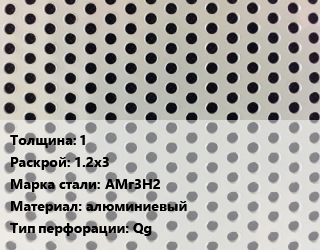 Лист перфорированный 1 1.2х3 Марка: АМг3Н2 алюминиевый Qg, шт, квадратная цена от 6 660 Р / шт, где купить, условия доставки в Гродно и Гродненской области