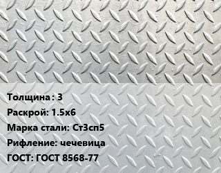 Лист рифленый 3 1.5х6 Сталь: Ст3сп5 чечевица ГОСТ: ГОСТ 8568-77