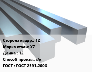 Квадрат стальной 12 Сталь: У7 L=12 г/к ГОСТ 2591-2006