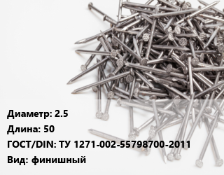 Гвоздь 2.5х50 ГОСТ: ТУ 1271-002-55798700-2011 финишный