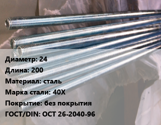 Шпилька стальная 24 L=200 сталь Сталь: 40Х без покрытия ГОСТ: ОСТ 26-2040-96, шт цена от 154.01 Р / шт, где купить, условия доставки в Гродно и Гродненской области