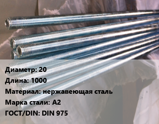 Шпилька стальная 20 L=1000 нержавеющая сталь Сталь: А2 ГОСТ: DIN 975, шпилька, шт цена от 994.55 Р / шт, где купить, условия доставки в Гродно и Гродненской области