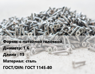 Шуруп с потайной головкой 1.6х13 сталь ГОСТ: ГОСТ 1145-80, упаковка 3500 шт цена от 1 433 Р / кг, где купить, условия доставки в Гродно и Гродненской области
