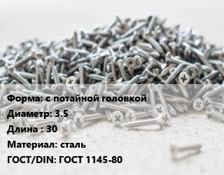 > Шуруп с потайной головкой 3.5х30 сталь ГОСТ: ГОСТ 1145-80, шт цена По запросу где купить, условия доставки в Гродно и Гродненской области
