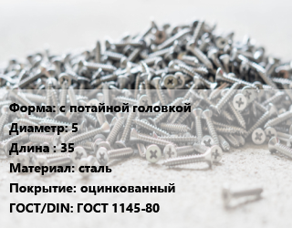 Шуруп с потайной головкой 5х35 сталь оцинкованный ГОСТ: ГОСТ 1145-80, кг, 5 кг цена от 218.29 Р / кг, где купить, условия доставки в Гродно и Гродненской области