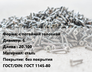 Шуруп с потайной головкой 6х20-100 сталь без покрытия ГОСТ: ГОСТ 1145-80, упаковка 1200 шт цена от 1 865 Р / кг, где купить, условия доставки в Гродно и Гродненской области