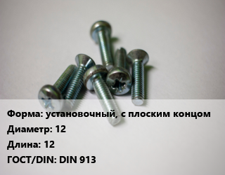 Винт установочный, с плоским концом 12х12 DIN 913, 12.9, цена за шт, кг цена от 6.57 Р / кг, где купить, условия доставки в Гродно и Гродненской области