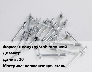 > Заклепка с полукруглой головкой 5х20 нержавеющая сталь, шт цена от 74.23 Р / шт, где купить, условия доставки в Гродно и Гродненской области