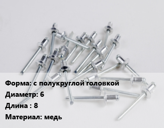 > Заклепка с полукруглой головкой 6х8 медь, упаковка 100 шт цена от 213.31 Р / шт, где купить, условия доставки в Гродно и Гродненской области