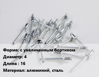 > Заклепка с увеличенным бортиком 4х16 алюминий, сталь, шт, тяговая цена от 169.37 Р / шт, где купить, условия доставки в Гродно и Гродненской области