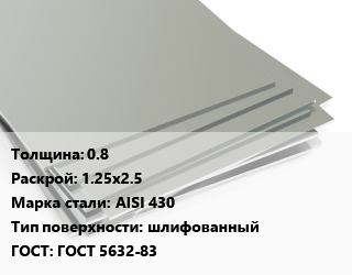 Лист нержавеющий 0.8 1.25х2.5 Сталь: AISI 430 Тип:шлифованный ГОСТ 5632-83, шт, х/к цена от 4 090 Р / т, где купить, условия доставки в Гродно и Гродненской области