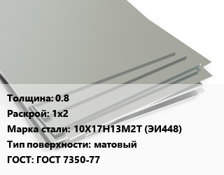 Лист нержавеющий 0.8 1х2 Сталь: 10Х17Н13М2Т (ЭИ448) Тип:матовый ГОСТ 7350-77, шт цена от 4 536 Р / т, где купить, условия доставки в Гродно и Гродненской области
