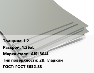 Лист нержавеющий 1.2 1.25хL Сталь: AISI 304L Тип:2B, гладкий ГОСТ 5632-83, цена договорная цена от 333 014 Р / т, где купить, условия доставки в Гродно и Гродненской области