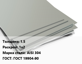Лист нержавеющий 1.5 1х2 Сталь: AISI 304 ГОСТ 19904-90
