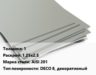 Лист нержавеющий 1 1.25х2.5 Сталь: AISI 201 Тип:DECO 8, декоративный, шт цена от 8 798 Р / т, где купить, условия доставки в Гродно и Гродненской области