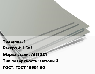 Лист нержавеющий 1 1.5х3 Сталь: AISI 321 Тип:матовый ГОСТ 19904-90, шт, х/к цена от 26 270 Р / т, где купить, условия доставки в Гродно и Гродненской области