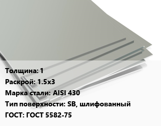 Лист нержавеющий 1 1.5х3 Сталь: AISI 430 Тип:SB, шлифованный ГОСТ 5582-75, в пленке, по запросу цена от 192 507 Р / т, где купить, условия доставки в Гродно и Гродненской области