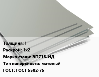 Лист нержавеющий 1 1х2 Сталь: ЭП718-ИД Тип:матовый ГОСТ 5582-75 цена от 310 250 Р / т, где купить, условия доставки в Гродно и Гродненской области