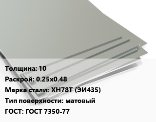 Лист нержавеющий 10 0.25х0.48 Сталь: ХН78Т (ЭИ435) Тип:матовый ГОСТ 7350-77 цена от 2 805 000 Р / т, где купить, условия доставки в Гродно и Гродненской области
