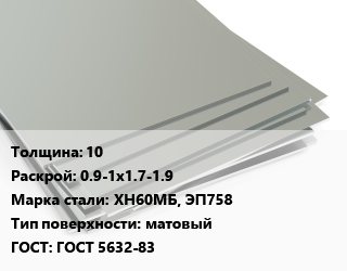 Лист нержавеющий 10 0.9-1х1.7-1.9 Сталь: ХН60МБ, ЭП758 Тип:матовый ГОСТ 5632-83 цена от 514 137 Р / т, где купить, условия доставки в Гродно и Гродненской области
