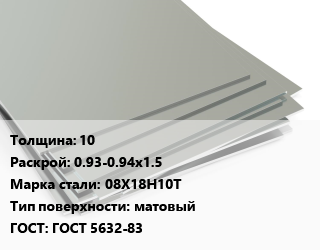 Лист нержавеющий 10 0.93-0.94х1.5 Сталь: 08Х18Н10Т Тип:матовый ГОСТ 5632-83 цена от 305 150 Р / т, где купить, условия доставки в Гродно и Гродненской области
