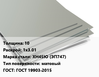 Лист нержавеющий 10 1х3.01 Сталь: ХН45Ю (ЭП747) Тип:матовый ГОСТ 19903-2015 цена от 514 137 Р / т, где купить, условия доставки в Гродно и Гродненской области