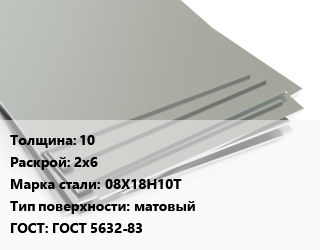 Лист нержавеющий 10 2х6 Сталь: 08Х18Н10Т Тип:матовый ГОСТ 5632-83, г/к, по запросу цена от 416 500 Р / т, где купить, условия доставки в Гродно и Гродненской области