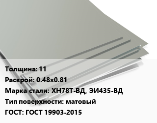 Лист нержавеющий 11 0.48х0.81 Сталь: ХН78Т-ВД, ЭИ435-ВД Тип:матовый ГОСТ 19903-2015 цена от 303 436 Р / т, где купить, условия доставки в Гродно и Гродненской области