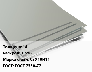 > Лист нержавеющий 14 1.5х6 Сталь: 03Х18Н11 ГОСТ 7350-77, шт цена от 314.99 Р / т, где купить, условия доставки в Гродно и Гродненской области