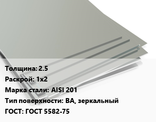 Лист нержавеющий 2.5 1х2 Сталь: AISI 201 Тип:BA, зеркальный ГОСТ 5582-75, шт, в пленке цена от 8 645 Р / т, где купить, условия доставки в Гродно и Гродненской области
