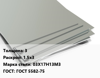 Лист нержавеющий 3 1.5х3 Сталь: 03Х17Н13М3 ГОСТ 5582-75