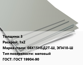 Лист нержавеющий 3 1х2 Сталь: 08Х15Н5Д2Т-Ш, ЭП410-Ш Тип:матовый ГОСТ 19904-90 цена от 1 530 000 Р / т, где купить, условия доставки в Гродно и Гродненской области