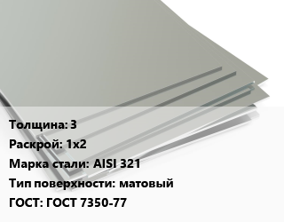 Лист нержавеющий 3 1х2 Сталь: AISI 321 Тип:матовый ГОСТ 7350-77 цена от 306 000 Р / т, где купить, условия доставки в Гродно и Гродненской области