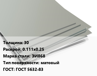 Лист нержавеющий 30 0.111х0.25 Сталь: ЭИ868 Тип:матовый ГОСТ 5632-83 цена от 471 730 Р / т, где купить, условия доставки в Гродно и Гродненской области