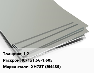> Лист нержавеющий 1.2 0.71х1.56-1.605 Сталь: ХН78Т (ЭИ435), м2 цена от 1 595 Р / т, где купить, условия доставки в Гродно и Гродненской области