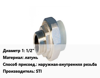 Американка 1/2" латунь наружная-внутренняя резьба STI, шт, угловая цена от 176.56 Р / шт, где купить, условия доставки в Гродно и Гродненской области