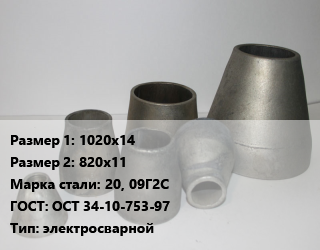 Переход стальной 1020х14х820х11 Марка: 20, 09Г2С ГОСТ: ОСТ 34-10-753-97 электросварной, шт, по запросу цена от 78 259 Р / шт, где купить, условия доставки в Гродно и Гродненской области