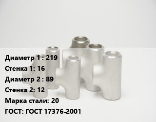 Тройник стальной 219х16 -89х12 Сталь: 20 ГОСТ: ГОСТ 17376-2001, по запросу, шт цена от 9 013 Р / шт, где купить, условия доставки в Гродно и Гродненской области
