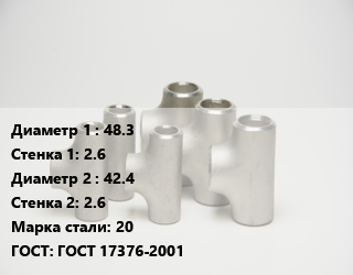 Тройник стальной 48.3х2.6 -42.4х2.6 Сталь: 20 ГОСТ: ГОСТ 17376-2001, штампованный,штампованный, бесшовный, исп.1,переходной, шт цена от 734.98 Р / шт, где купить, условия доставки в Гродно и Гродненской области