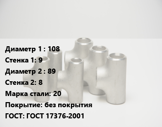 Тройник стальной 108х9 -89х8 Сталь: 20 без покрытия ГОСТ: ГОСТ 17376-2001, штампованный, по запросу, шт цена от 1 657 Р / шт, где купить, условия доставки в Гродно и Гродненской области