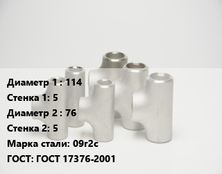 Тройник стальной 114х5 -76х5 Сталь: 09г2с ГОСТ: ГОСТ 17376-2001, штампованный, по запросу, шт цена от 1 522 Р / шт, где купить, условия доставки в Гродно и Гродненской области